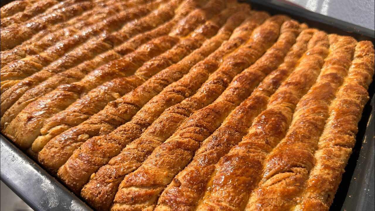 Hamur şeritlerinin uçlarından kıvırarak burgu haline getirin.