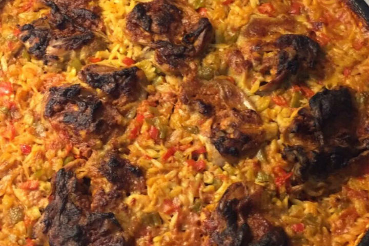 En son arpa şehriyeyi ve baharatları ekleyip biraz da o halde karıştırıp altını kapatıyoruz (fırında da pişmeye devam edecek).