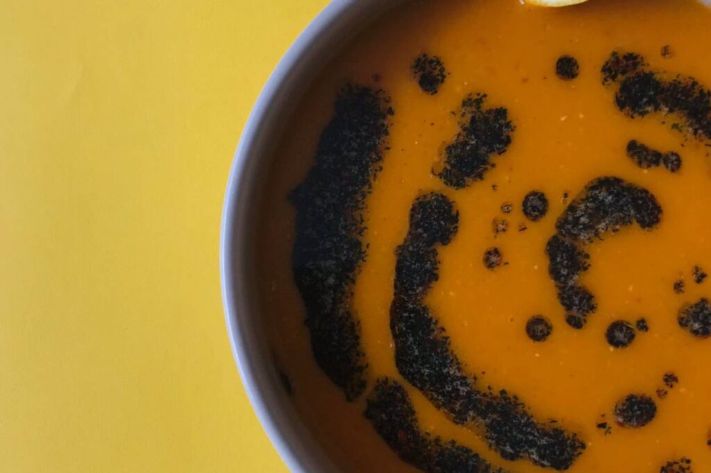 Blender ile tüm materyaller çekildikten sonra üzeri için başka bir tavada naneli yağ hazırlanır ve çorbanın üzerine dökülerek servis edilir. Afiyet olsun.