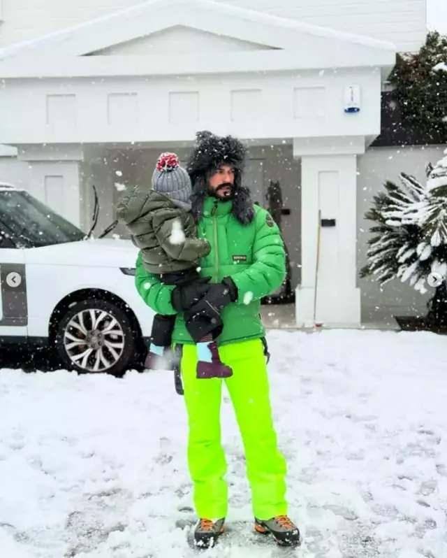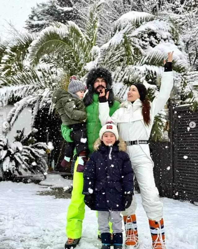 Burak Özçivit kar yağışının akabinde çocukları ve eşi Fahriye ile bir arada konutunun bahçesine çıktı. Çiftin pozları takipçilerinin beğenisini toplarken, Özçivit’in kombini toplumsal medyanın gündemine oturdu.