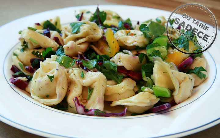 Lezzetli peynirler ile dolgulu olan tortellini makarna salatası tanımı karbonhidrat ile hafifliği bir ortada sunuyor.