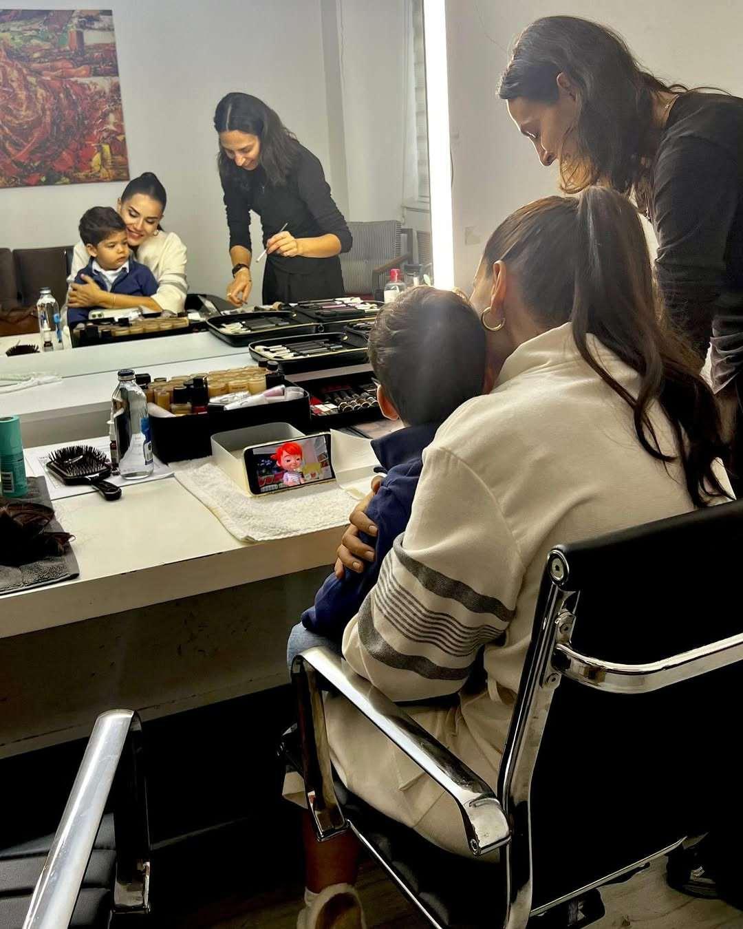 Fahriye Evcen’den 21 aylık oğlu Kerem ile çekilmiş set pozu! Bakın kime benzetildi