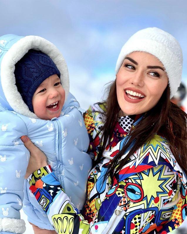 Ailesiyle çıktığı kar tatilinde çektirdiği karelerini yayınlayan Evcen’in oğlu ile çekilmiş olduğu kar pozları çok beğenildi.