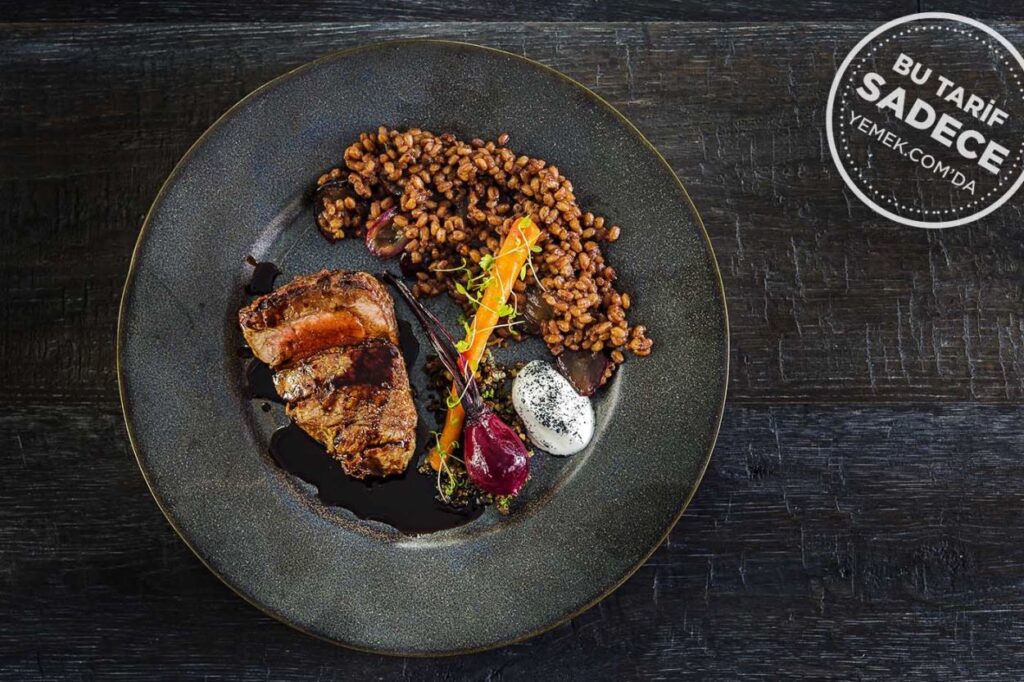 Bonfile, havuç ve pancar kızartması, firik pilavı, erik püresi… Anlayacağınız sunumu bir tabloyu anımsatan firik pilavlı bonfile tanımında yok yok.