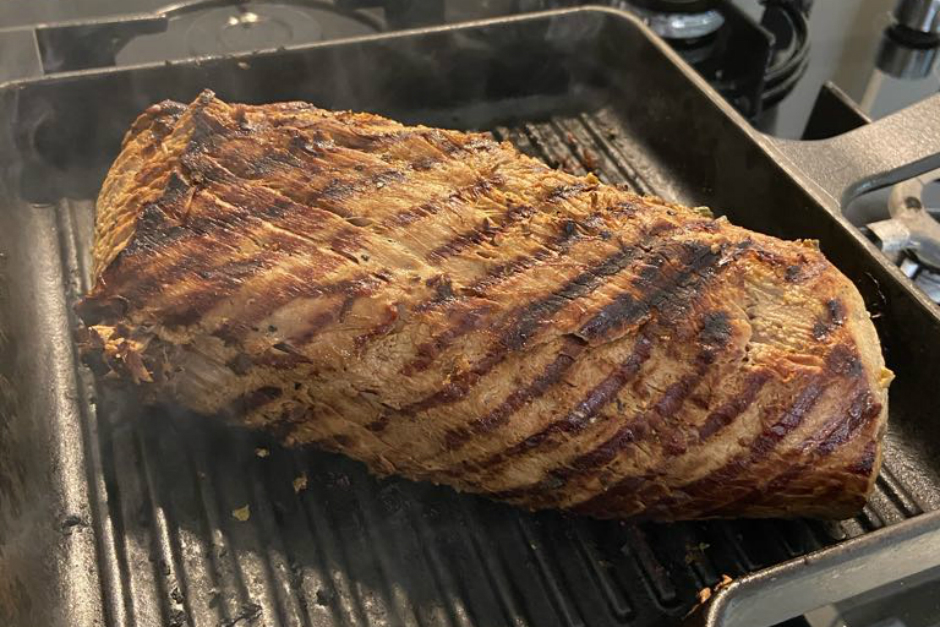 Artık mühürleme sürecine geçebiliriz. Yağsız döküm tavada etin her yerini mühürlüyoruz.