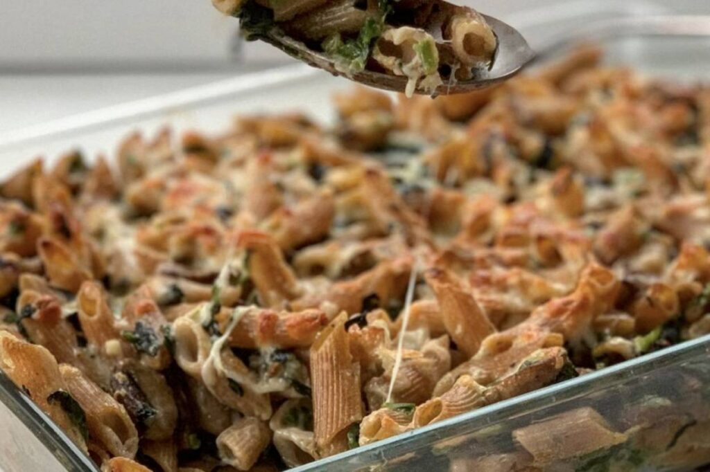 Fırında Ispanaklı Mantarlı Tam Buğday Makarna