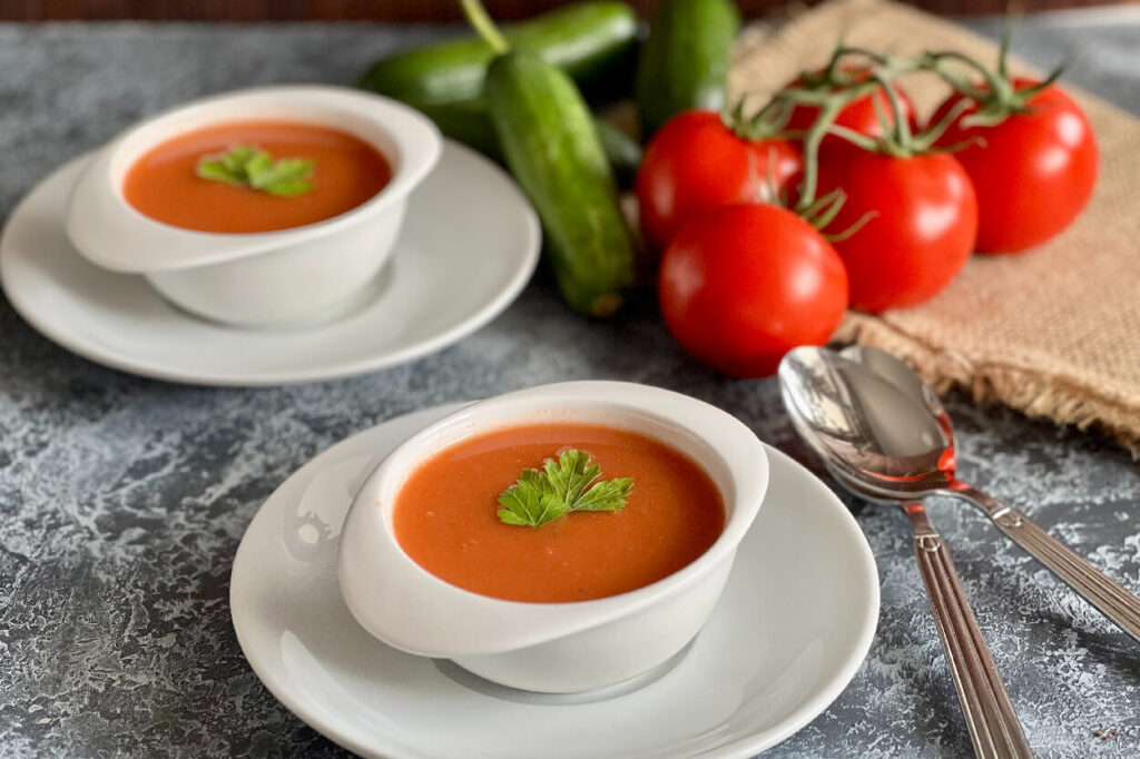 Gazpacho, çiğ sebzelerden yapılan ve soğuk servis edilen, domates bazlı İspanya’nın güney bölgesinde keşfedilmiş ve dünyaca kabul görmüş bir çorba çeşidi.