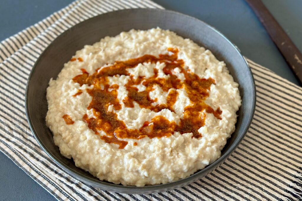 Kıvam alan herseyi servis tabağına alın. Üzerine toz biberli yağ kızdırıp servis edin.