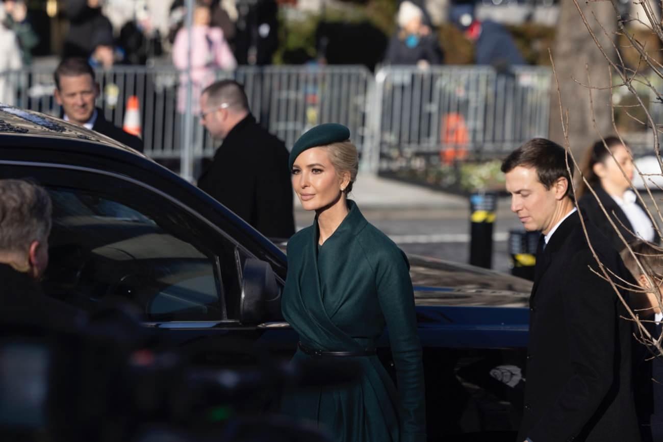 Aynı gün yemin merasimine de katılan İvanka, bu sefer yeşil bir kadro elbise giymişti. Siyah kemerli ve asimetrik yakalı ceketi, birebir renk beresi ve 5.900 dolarlık Dior çantasıyla şık bir manzara sergiledi.