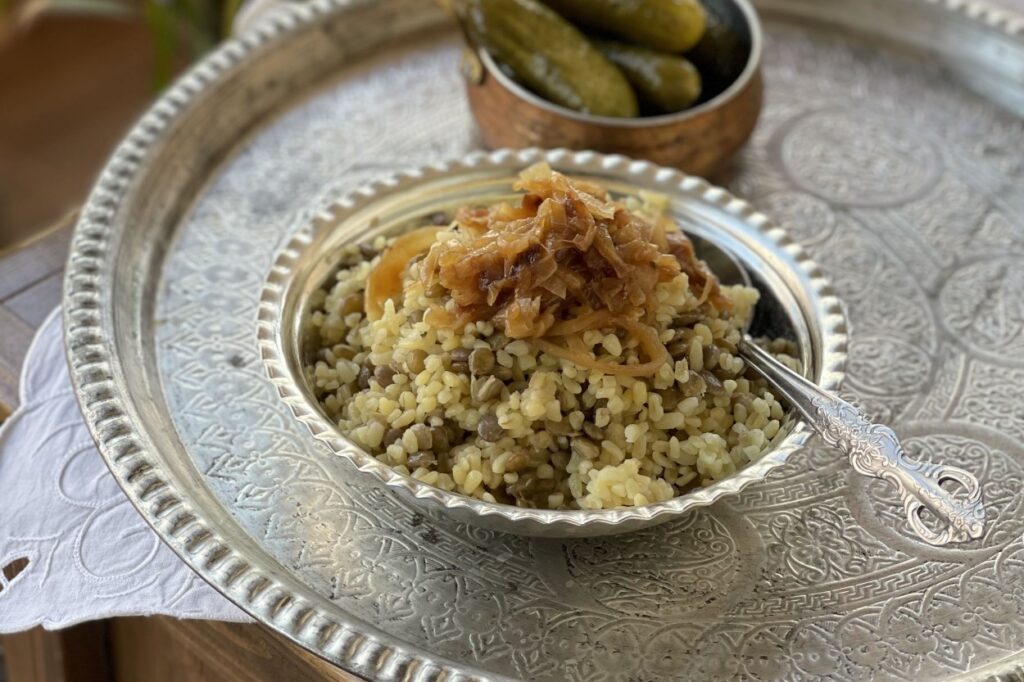 Karamelize Soğanlı Yeşil Mercimekli Bulgur Pilavı