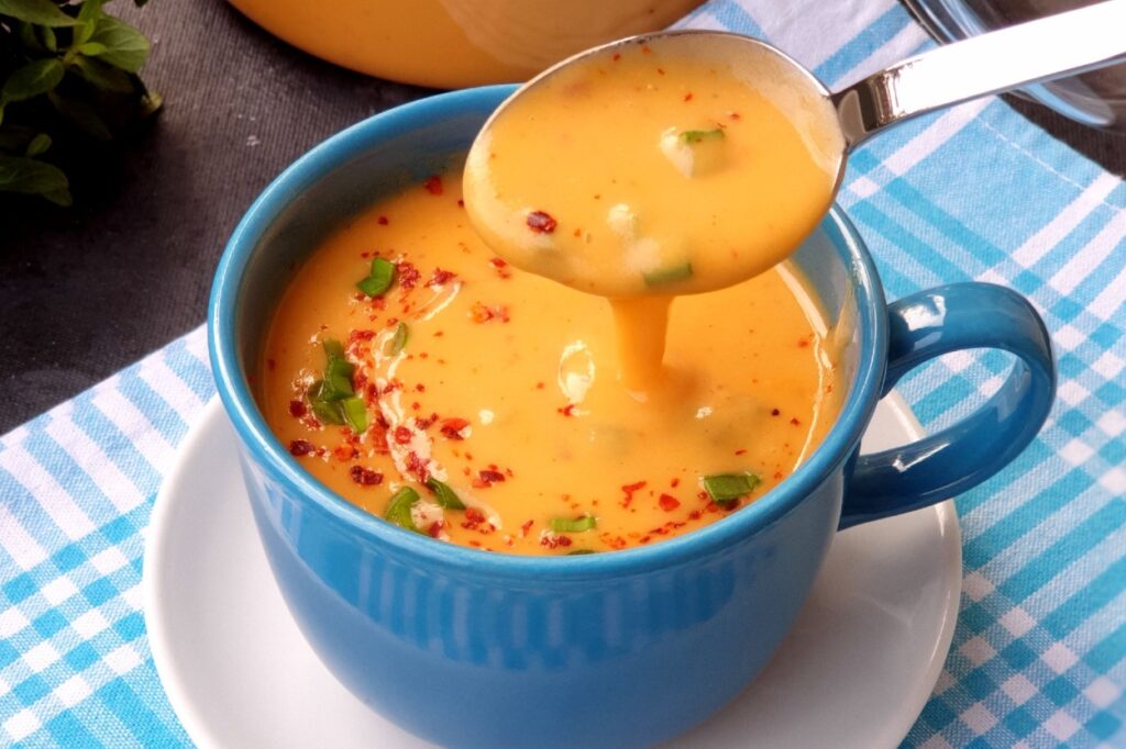 3. Kaynayınca el blenderı ile pürüzsüz bir kıvama getirin. Üzerine taze soğan serperek servis yapın. Afiyet olsun.