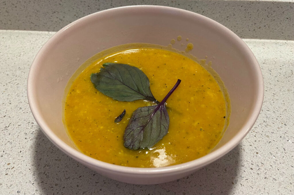 Çorba kasesine alarak üzerine birkaç adet reyhan yapağı koyarak servise hazır hale getiriyoruz.