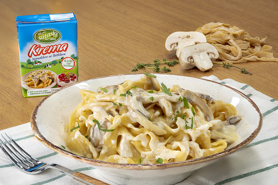 Mantarlar renk değiştirmeye başlayınca Sütaş Krema’yı ekleyip ateşi kısın.