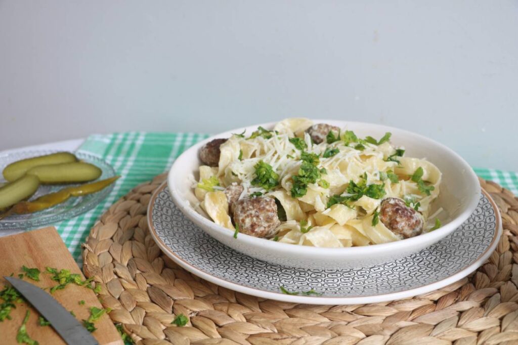 Krema Soslu Köfteli Makarna Tanımı İçin Malzemeler