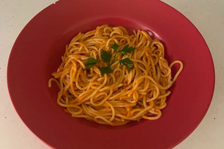 Sosundaki hem tatlı hem tuzlu tatla yedikçe bir tabak daha isteyeceğiniz bir tanım geldi. Kremalı domatesli makarna karşınızda.