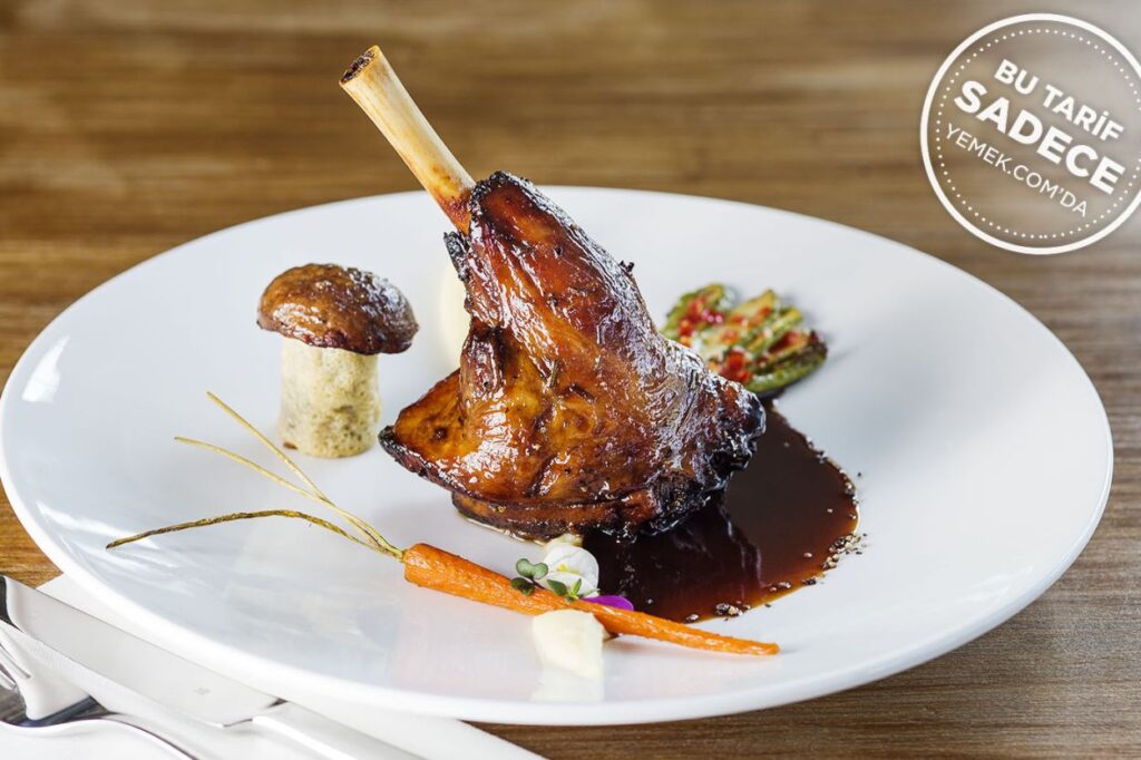 Profesyonel mutfaklarda kullanılan “sous vide” tekniğiyle düşük ısıda pişirilen soya soslu kuzu incik tanımı, lezzetini soya sosu ve kök sebzelere borçlu.