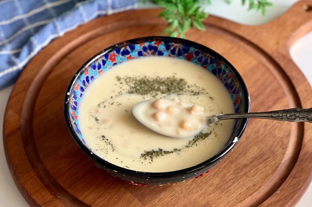 1. Buğday ve nohutu farklı ayrı ön haşlama yapın. Yoğurdu karıştırıp ayran kıvamına getirin.