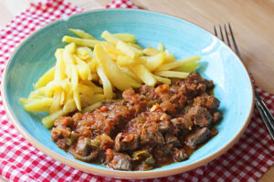 Patlıcanlı Geleli Kebabı Tanımı İçin Malzemeler1/2 kilogram soğan1 kilogram patlıcan1/2 kilogram domates250 gram biber750 gram kuşbaşı etPatlıcanlı Geleli Kebabı Tanımı...