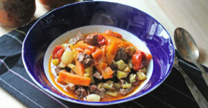 Etli Patlıcan Yemeği Tanımı İçin Malzemeler500 gram dana eti3 adet patlıcan3 adet yeşil biber2 adet domates1 adet kuru soğan1 baş...