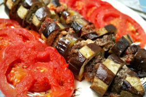 Köfteli Patlıcan Kebap Tanımı İçin Malzemeler4 adet iri patlıcan4 adet iri domates250 gram köftelik kıyma1 adet kuru soğan1 yemek kaşığı...