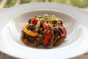 Wok'da Susamlı Kebap Tanımı İçin Malzemeler500 gram yağsız biftek (iyi dövülmüş, mümkün olduğunca incecik jülyen doğranmış)3 adet paprika biber1 adet...