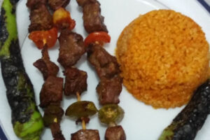 Ev İmali Ciğer Şiş Tanımı İçin Malzemeler1 adet domates1 adet biber500 gram doğranmış dana ciğer100 gram doğranmış kuyruk yağı1 yemek...