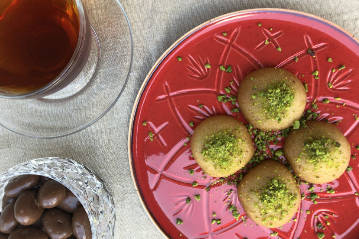 3. Kaymak, sıvı yağ ve unu bir kapta yoğuralım. Minik cevizler yapıp tepsiye dizelim.