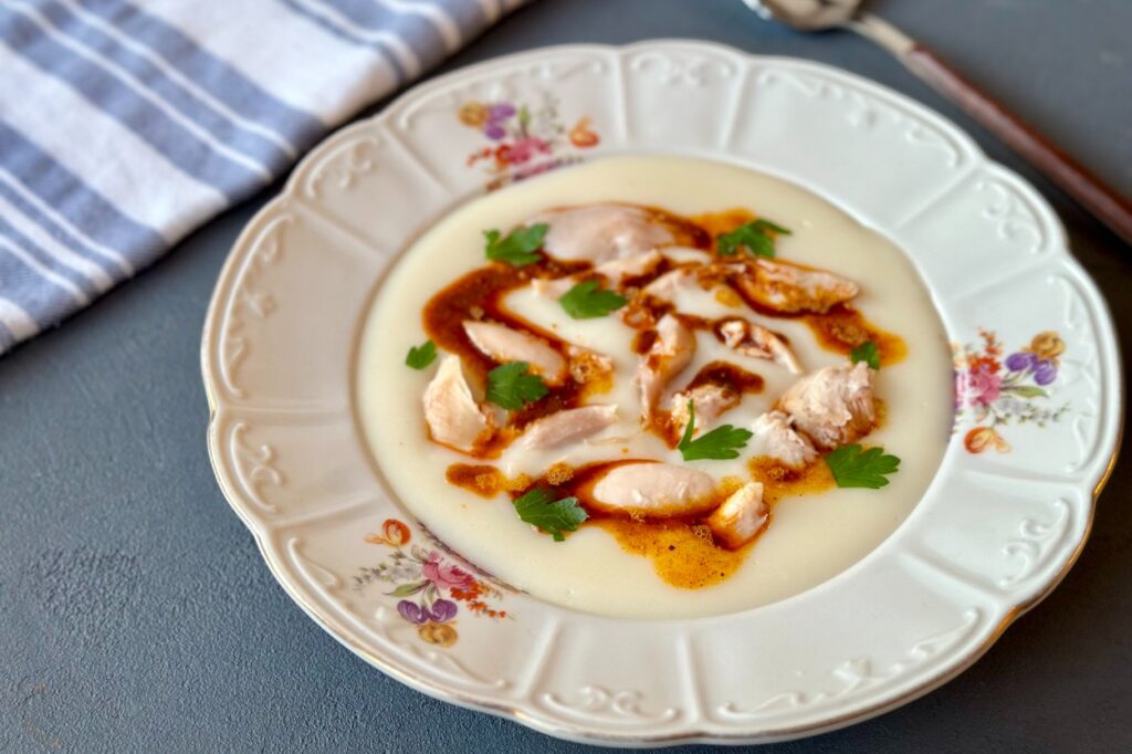 4. Bu karışımı ayırdığınız tavuk suyunun içerisine dökün.