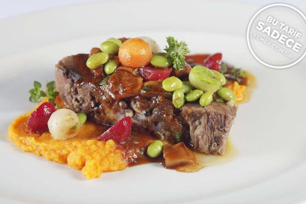Farklı bir pişirme yoluyla pişen eti, tatlı patates püresi ve porçini yahnisi eşliğinde servis edin.