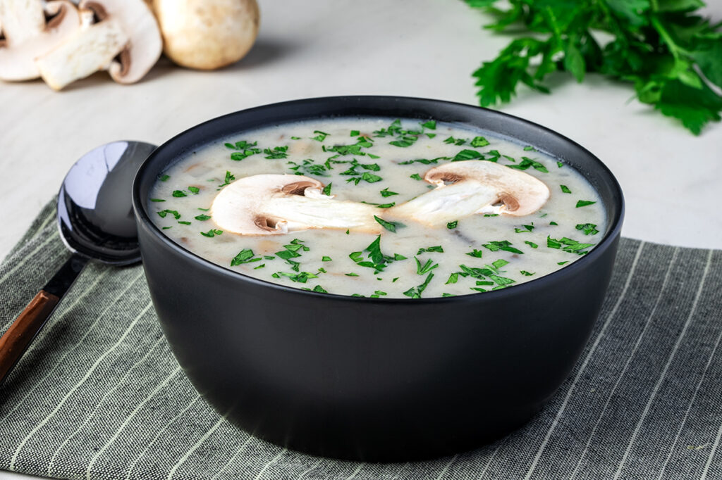 Son adım olarak kıyılmış maydanoz ile süsleyin. Sütlü mantar çorbası hazır. Afiyet olsun!