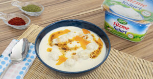 Yoğurtlu Topalak Çorbası Tanımı İçin MalzemelerÇorba için:2 su bardağı Sütaş Süzme Yoğurt1 su bardağı köftelik bulgur1 yemek kaşığı irmik4 su...