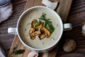Kremalı Dereotlu Mantar Çorbası Tanımı İçin Malzemeler400 gram mantar2 yemek kaşığı sıvı yağ1 yemek kaşığı tereyağı3 diş rendelenmiş sarımsak2 tepeleme...