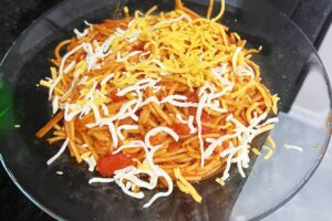 Soslu Spagetti Tanımı İçin Malzemeler400 gram spagetti2 yemek kaşığı zeytinyağı1 adet büyük boy soğan3 diş ezilmiş sarımsak4 adet rendelenmiş domates1...