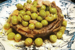 Etli Enginar Çanağı Tanımı İçin Malzemeler500 gram kuzu kuşbaşı6 adet enginar (taze, çiçek enginar)500 gram taze bezelye1 adet orta boy...