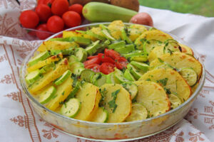 Fırında Kıymalı Zerzevat Dizmesi Tanımı İçin Malzemeler2 adet kuru soğan3 diş sarımsak4 yemek kaşığı zeytinyağı200 gram kıyma1 çay kaşığı tuz1...