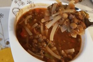 Erişteli Yeşil Mercimek Çorbası Tanımı İçin Malzemeler1 adet soğan1 adet yeşil biber1 adet kırmızı biber1 bardak erişte1 bardak yeşil mercimek100...