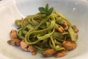 Taglierini Tanımı İçin Malzemeler200 gram un 2 adet yumurta1 tatlı kaşığı tuz70 mililitre ıspanak (suyu)300 gram somon1 adet limon2 yemek...