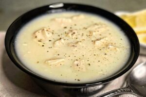 Yalancı İşkembe Çorbası Tanımı İçin Malzemeler1 parça tavuk göğsü1 çay bardağı yoğurt 1 adet limonun suyu2 yemek kaşığı un2 yemek...