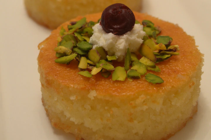 Üzerine bir tepsi kapatarak şerbeti çekmesini sağlayın. (Tatlı sıcak şerbet soğuk olacak) Tatlınız soğuduktan sonra bardak yardımı ile yuvarlak kesip üzerini kaymak, Antep fıstığı ve vişneyle süsleyin. Akabinde servis edin. Afiyetler olsun!