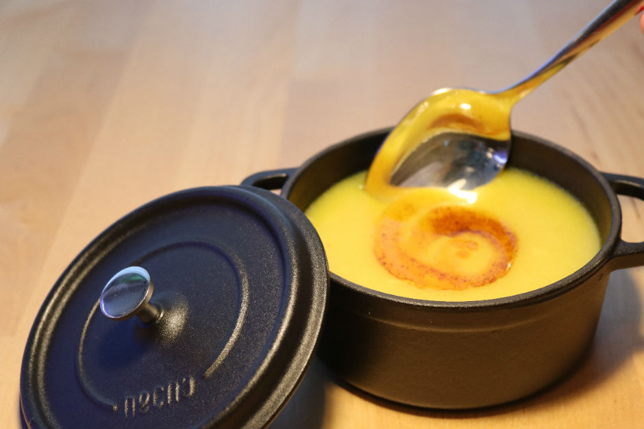 3. Kavrulan unumuzun üzerine zerdeçalı ekleyip, suyunu azar azar ek ederek unu açalım.