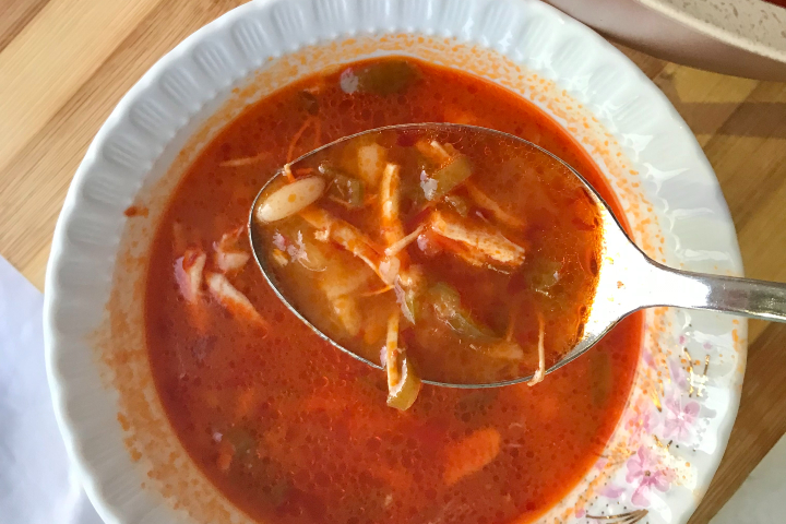 En son üzerine bir kase didiklenmiş tavuğu ekliyoruz, birkaç dakika kaynatıyoruz. Afiyet olsun.