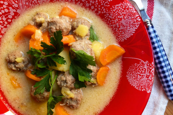 Lezzetini nefis terbiyesinden alan, köftelerin mis sebzelerle buluştuğu klasik bir lezzet, terbiyeli ekşili köfte tanımı.