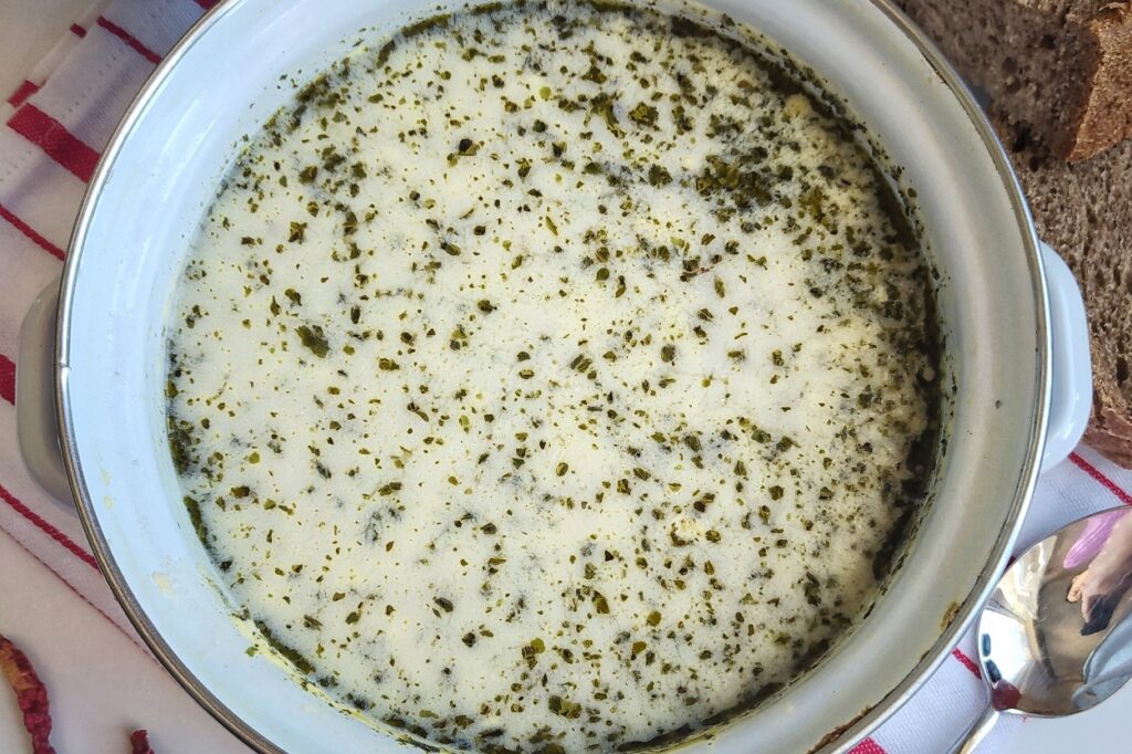 Sosu için sos tavasında tereyağı ve sıvı yağ ısıtın, naneyi ek edip kaynayan çorbanın üzerine gezdirin.