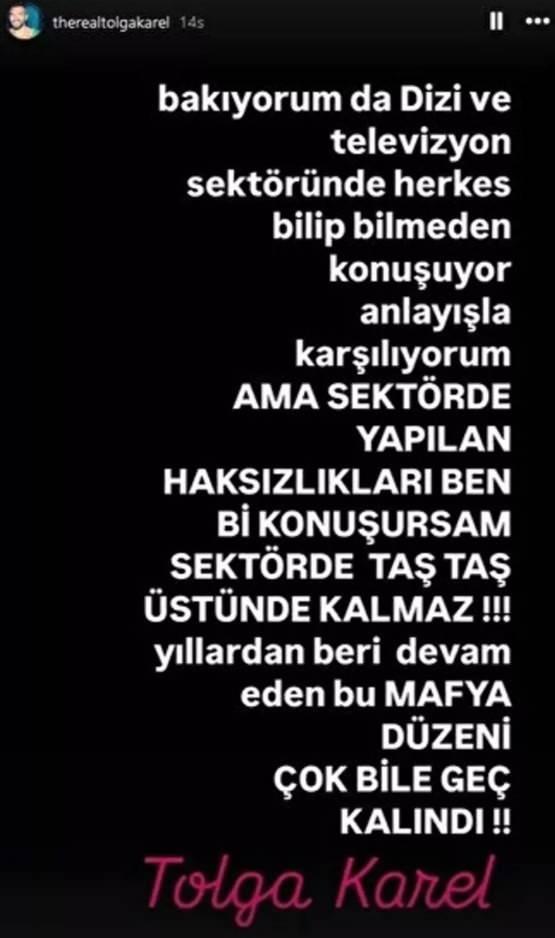 Yaklaşık 8 yıl evvel oyunculuğu bırakarak Amerika’ya yerleşen Tolga Karel son günlerde Türkiye gündeminde geniş yankı uyandıran monopolleşme tezleri ile ilgili şoke eden açıklamalarda bulundu. Karel, toplumsal medya hesabından ‘Konuşursam taş üstünde taş kalmaz’ diyerek anlattı.