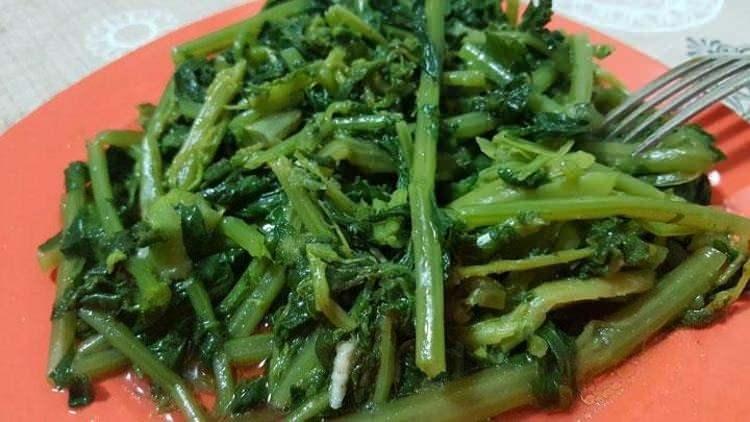 Turp otlarını yıkayıp haşlayın. Sarımsağı ezin.