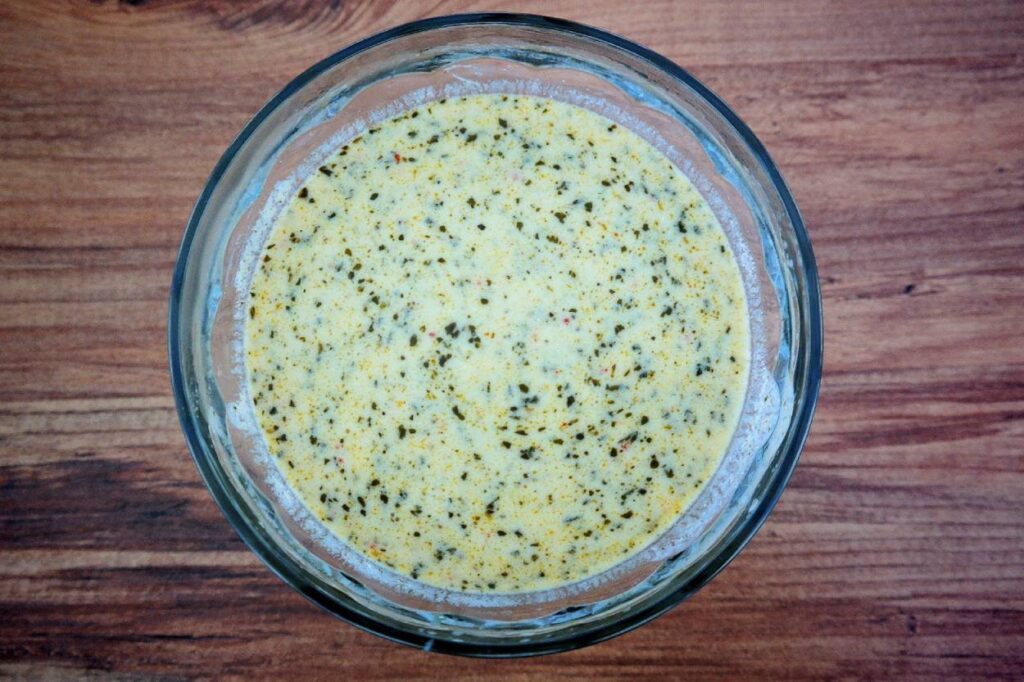 Bu sırada, farklı bir kapta, 1 su bardağı süzme yoğurt ve 1 yumurtayı homojen hale gelene kadar çırpın.