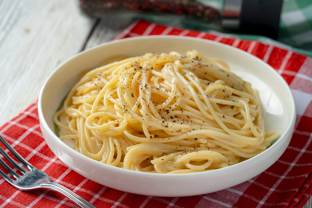 Makarnayı çabucak servis tabağına alın ve üzerine taze çekilmiş karabiber ekleyip servis edin. İstek ederseniz bu kademede biraz daha peynir ekleyebilirsiniz. Afiyet olsun.