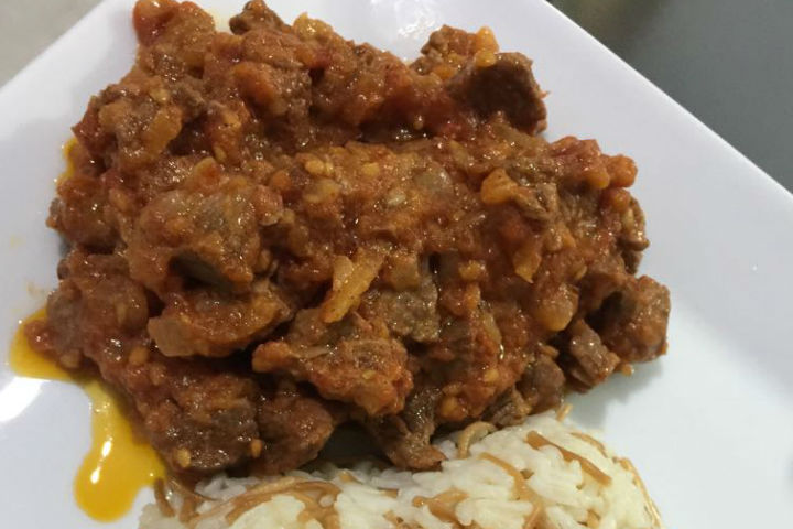 En son rendelediğimiz domatesleri ekleyip tuz dışındaki baharatları ve sıcak suyu ekleyerek kapağını kapatıp, kısık ateşte pişmeye bırakıyoruz. Afiyet olsun.